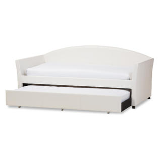 Baxton Studio Frank Modern And Contemporary White Faux Leather Button Tufting Sofa Twin Daybed With Roll Out Trundle Guest Bed