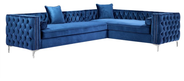 Jeannie 120 Velvet Corner Sectional Sofa Navy Right Facing