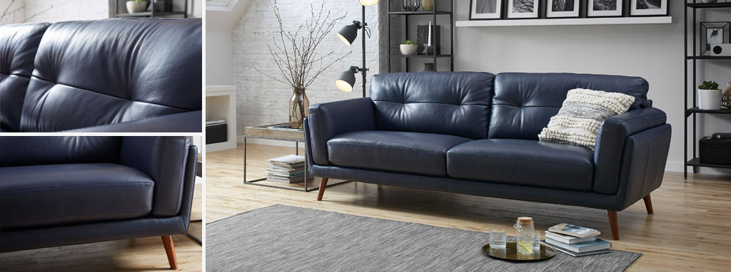 Winning Blue Leather Sofa Furniture Classic Modern Sky Store