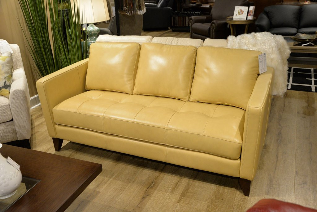 Gorgeous Yellow Leather Couch Macys Pale Sofa For Sale