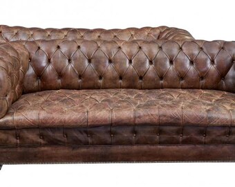 91 Sofa Restoration Style Vintage Cigar Bycast Leather Tufted Chesterfield