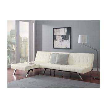 Modern Sofa Bed Sleeper Faux Leather Convertible Sofa Set Couch Bed Sleeper Chaise Lounge Furniture Vanilla White E M I L Y