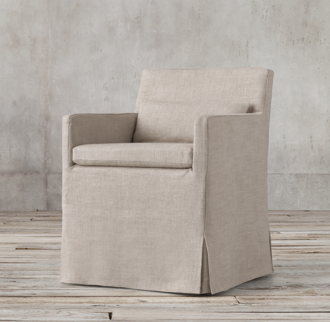 Low Belgian Track Arm Slipcovered Armchair