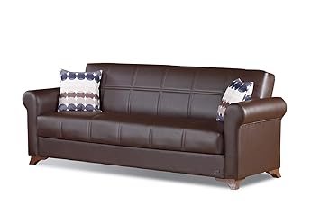 Beyan Queens Collection Modern Convertible Folding Sofa Bed With Storage Space Includes 2 Pillows Dark Brown