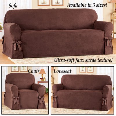 Faux Suede Slipcover With Custom Fit Ties Furniture Cover Protector Chocolate Brown Chocolate Chair