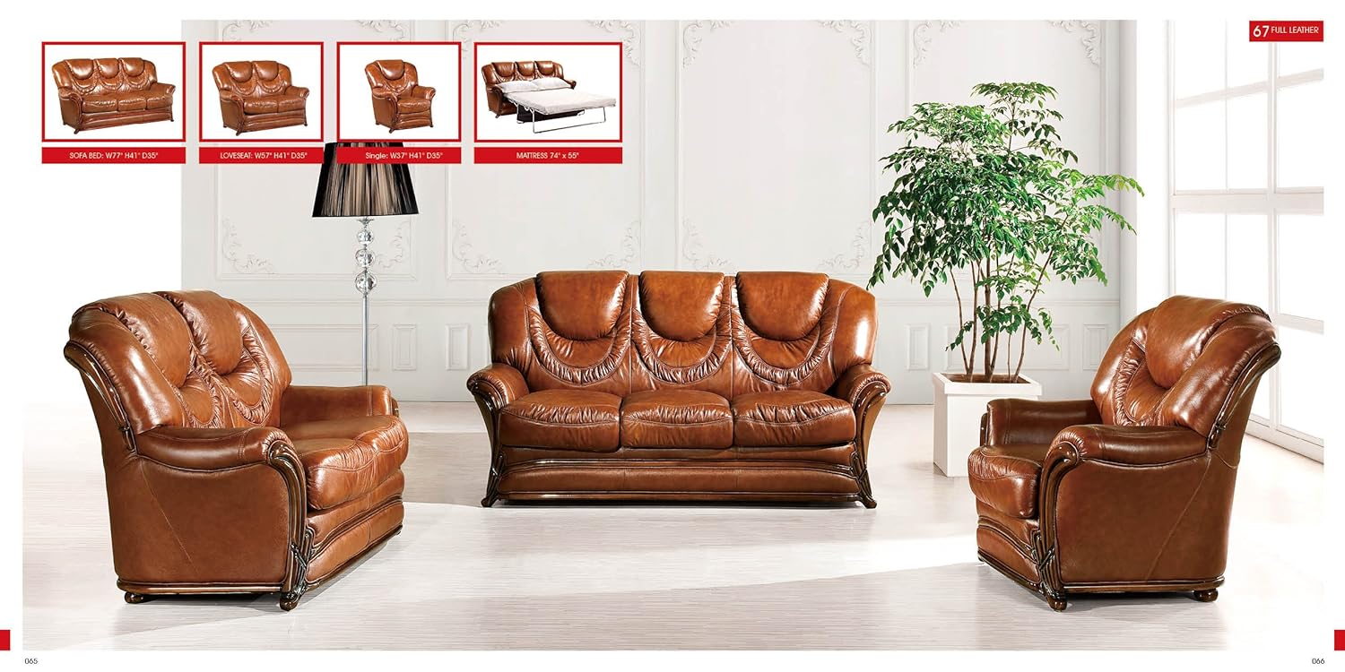 Amazon Com Esf Modern 67 Full Brown Italian Leather Sofa