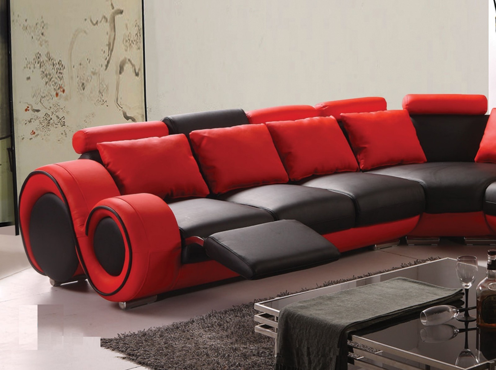 Motion Red And Black Bonded Leather Sectional Sofa Set Reclining Couch Pillows