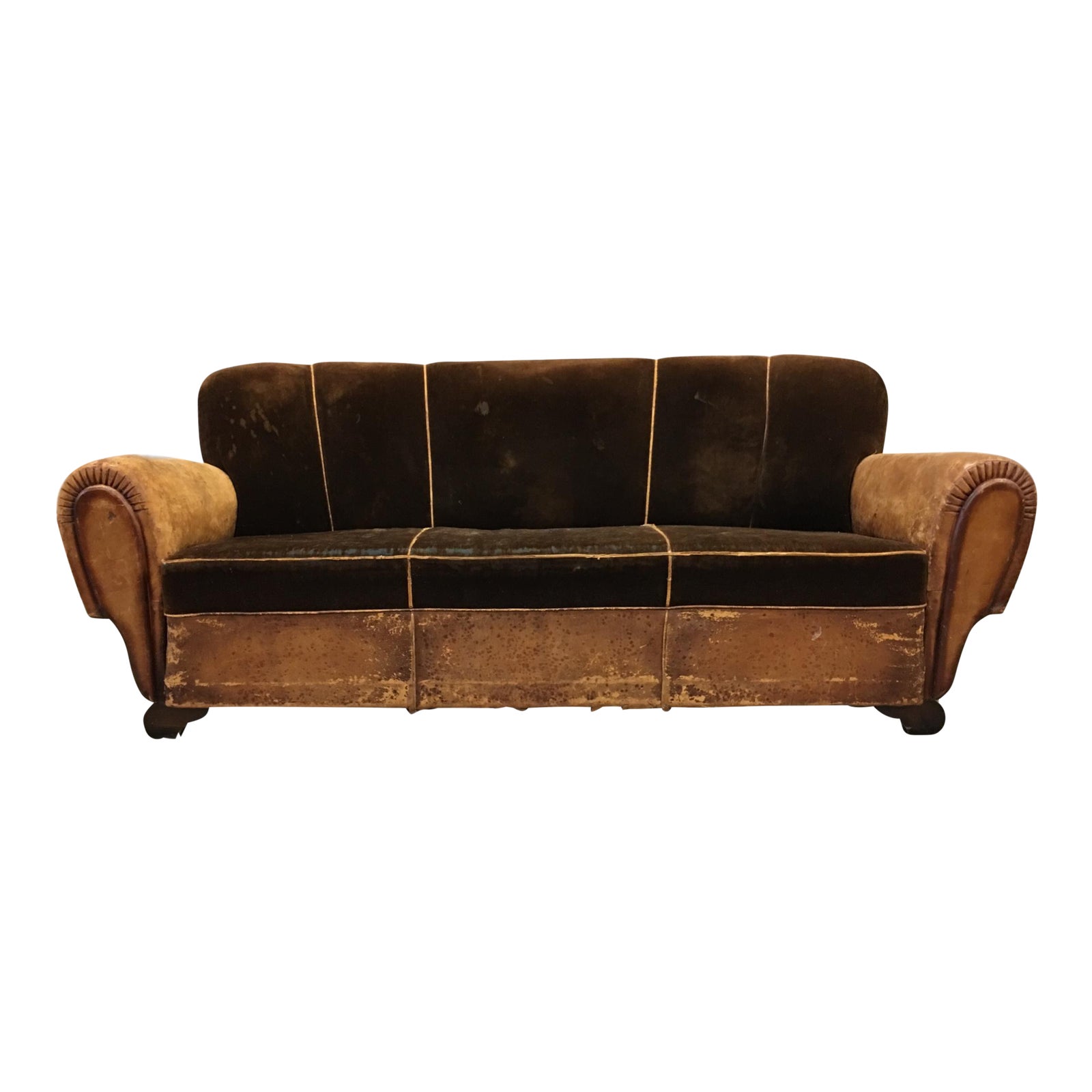 Art deco mahogany three seat sofa by jacob kjaer. At wayfair we want to make sure you find the best home goods when you shop online. Tan leather with brown piping and wooden legs.