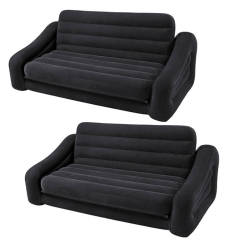 Intex Inflatable Queen Size Pull Out Futon Sofa Couch Bed Dark Gray 2 Pack