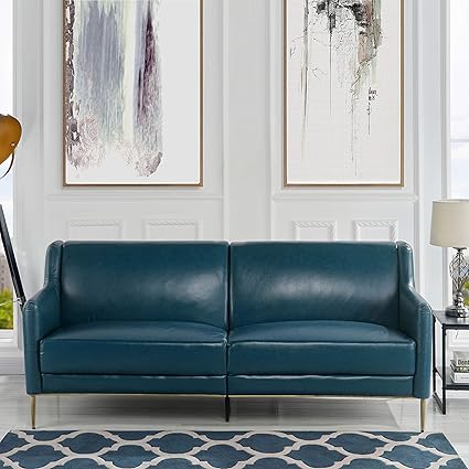 Midcentury Leather Sofa Sleek Simple Living Room Couch Blue