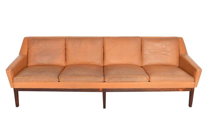 Danish Mid Century Modern Four Seat Sepia Leather Sofa By