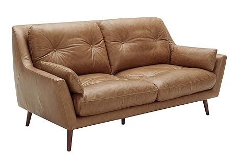 Rivet Brooker Down Filled Mid Century Sofa 76 W Top Grain Leather Cognac