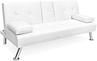 Best Choice Products Modern Faux Leather Convertible Futon Sofa Bed Recliner Couch W Metal Legs 2 Cup Holders White