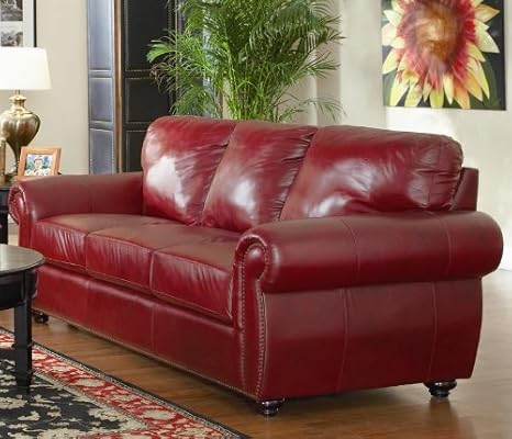 Amazon Com Sofa Couch With Nail Head Trim In Deep Burgundy