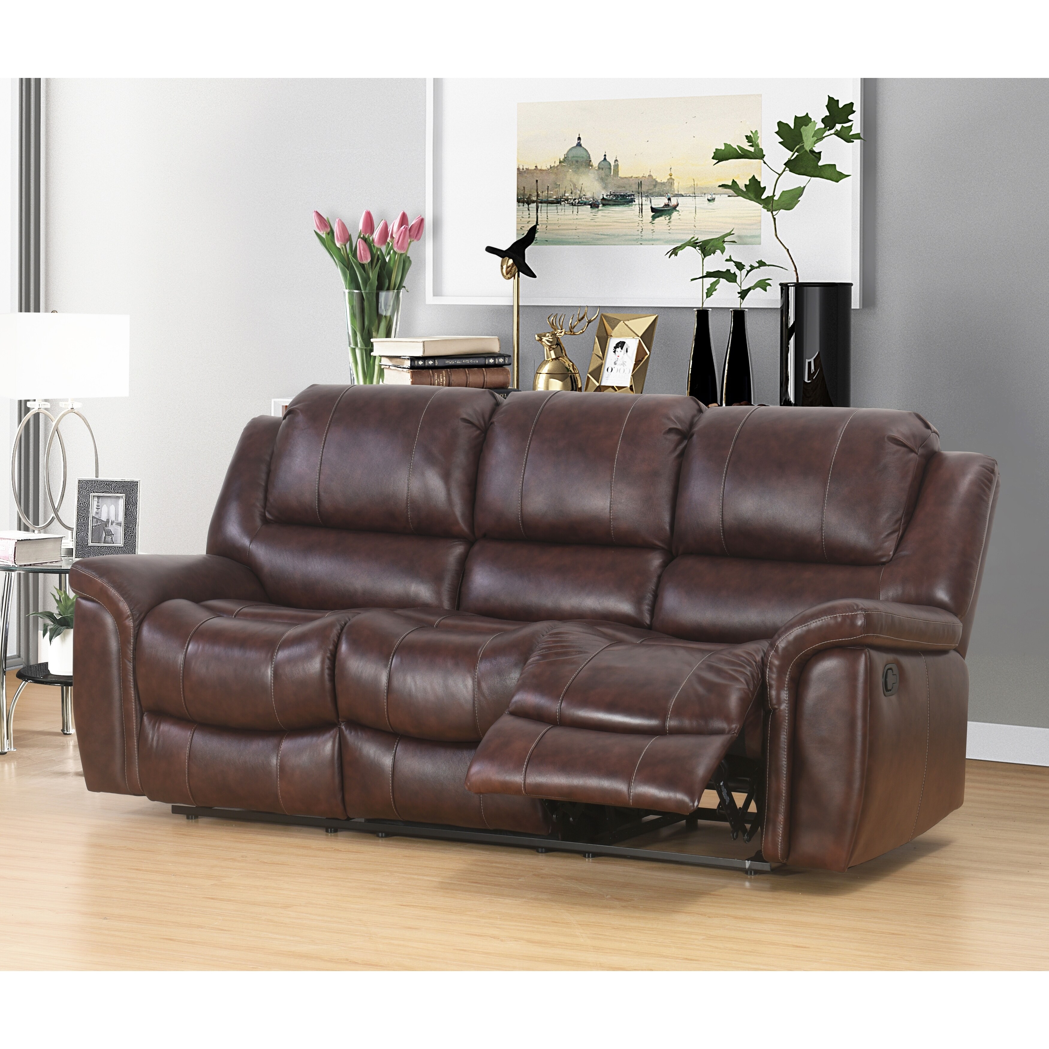 Abbyson Benicia Brown Top Grain Leather Sofa Recliner
