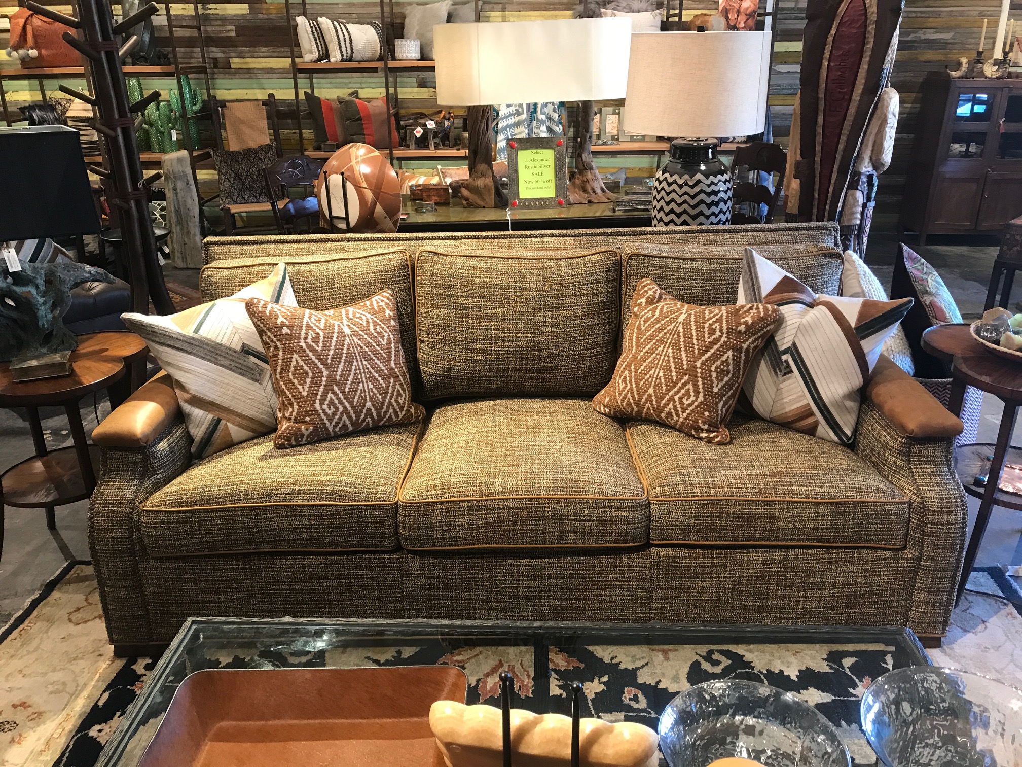 Tweed Sofa With Leather Accents At Anteks Furniture Store In