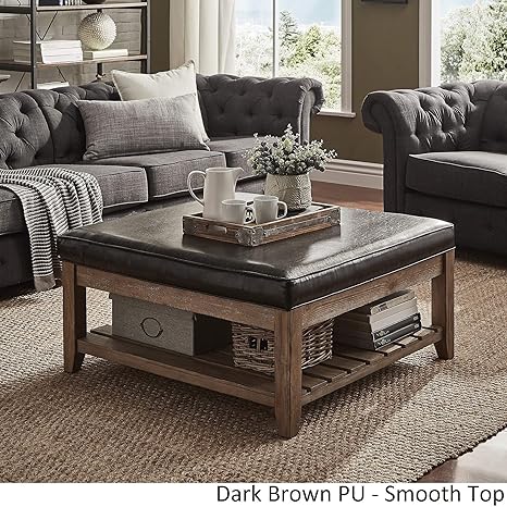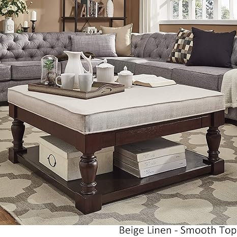 Inspire Q Lennon Baluster Espresso Storage Ottoman Coffee Table By Classic Beige Linen Smooth Top