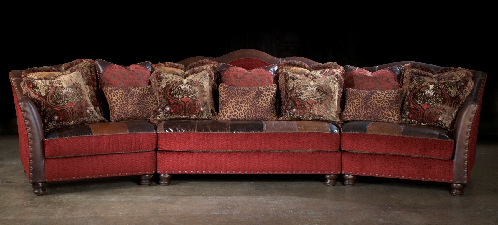 Red Sectional Sofa Couch Leather Patchwork