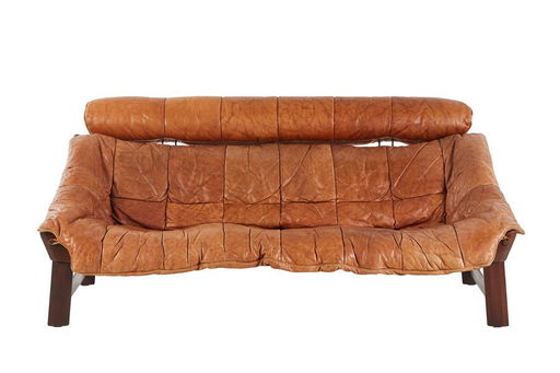 Danish Mogens Hansen 2 1 2 Seat Sofa In Light Tan Patchwork Buffalo Leather