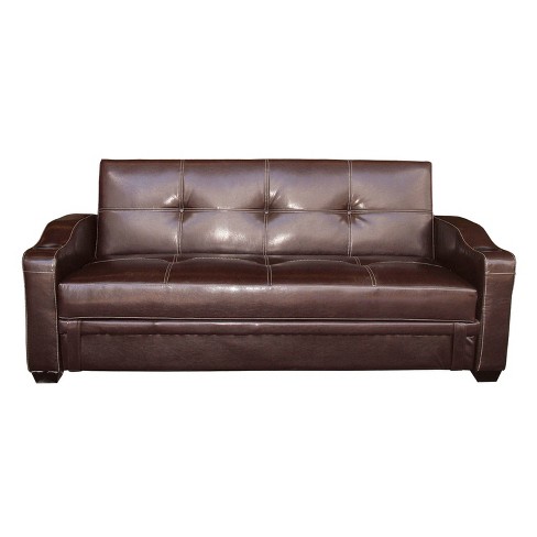Brown faux leather sofa bed. The weston home bowman faux leather loveseat has a grand look and is scaled to fit your smaller living space. Set your store to see local availability. This loveseat is inspired by the timeless chesterfield sofa and boasts a rolled back and matching arms.