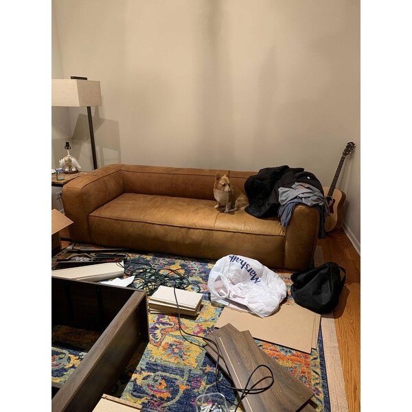 This puffy contemporary sofa is composed of full italian leather with a lovely distressed finish.