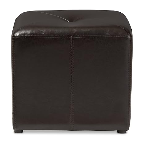 Baxton Studio Brown Lave Cube Shaped Bonded Leather Ottoman Small