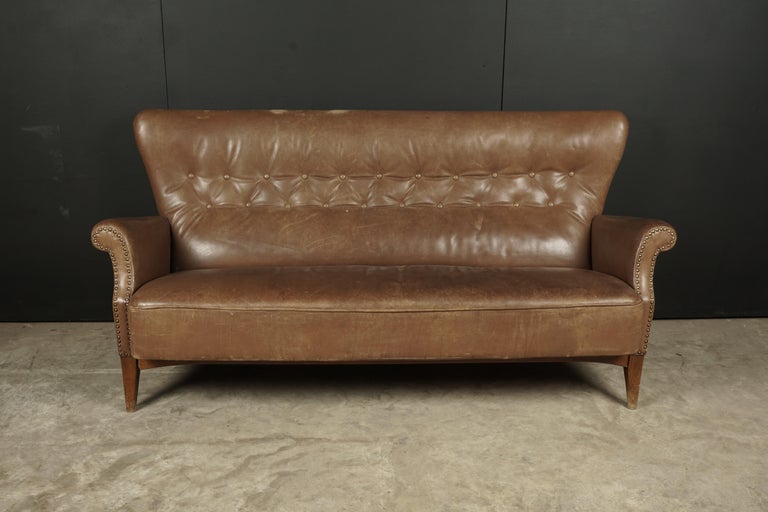 Three Seat Leather Sofa By Fritz Hansen Circa 1950