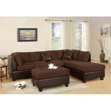 3 Piece Modern Reversible Microfiber Faux Leather Sectional Sofa Set W Ottoman Saddle