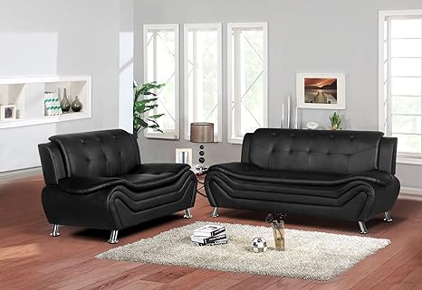 Container Furniture Direct Arul Leather Air Upholstered Mid Century Modern Set With 77 5 Sofa And Loveseat Black