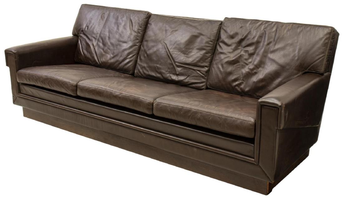 Danish Mid Century Modern Leather Three Seat Sofa