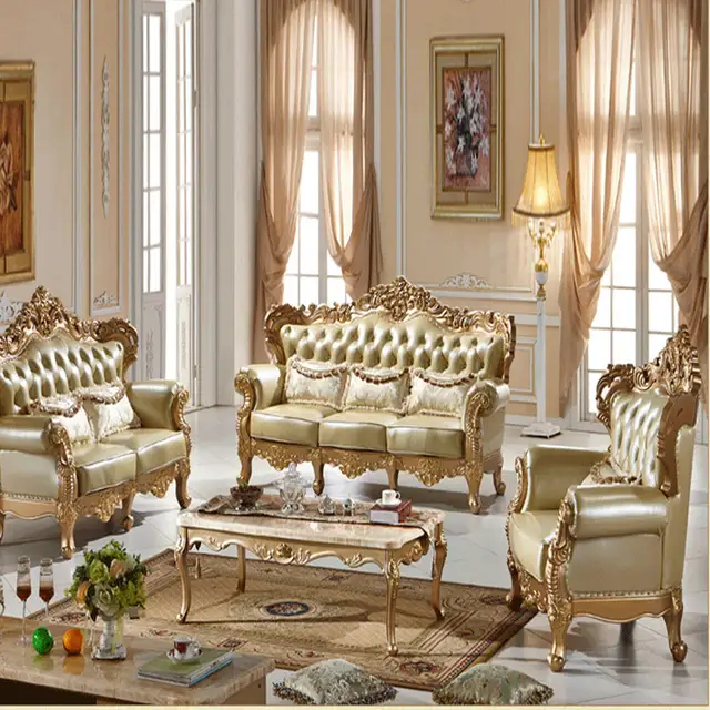 European Style Sofa Leather Sofa New Champagne Gold Solid Sofa Living Room Furniture