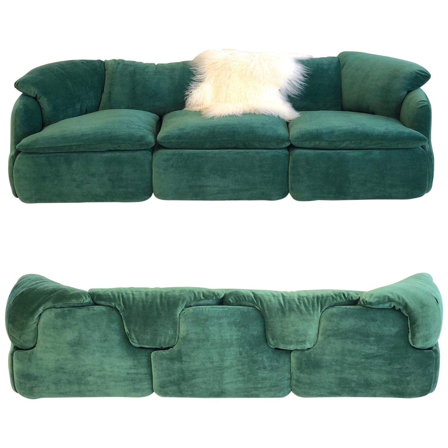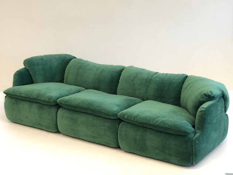 Pair Of Italian Emerald Green Mohair Sofas By Alberto