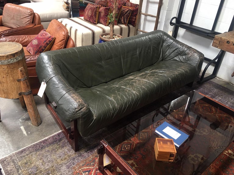 Percival Lafer Brazilian Sofa With Dark Green Leather