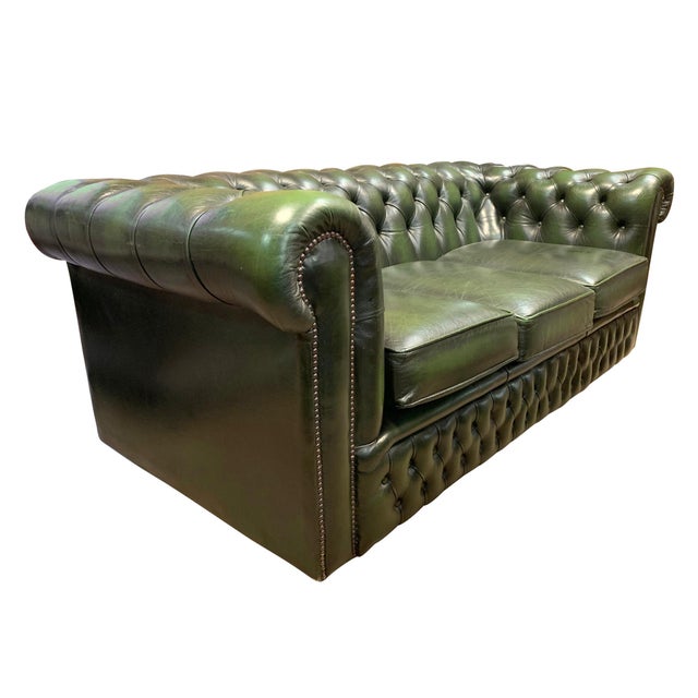 Mid Century Chesterfield Sofa In Emerald Green Leather Monc