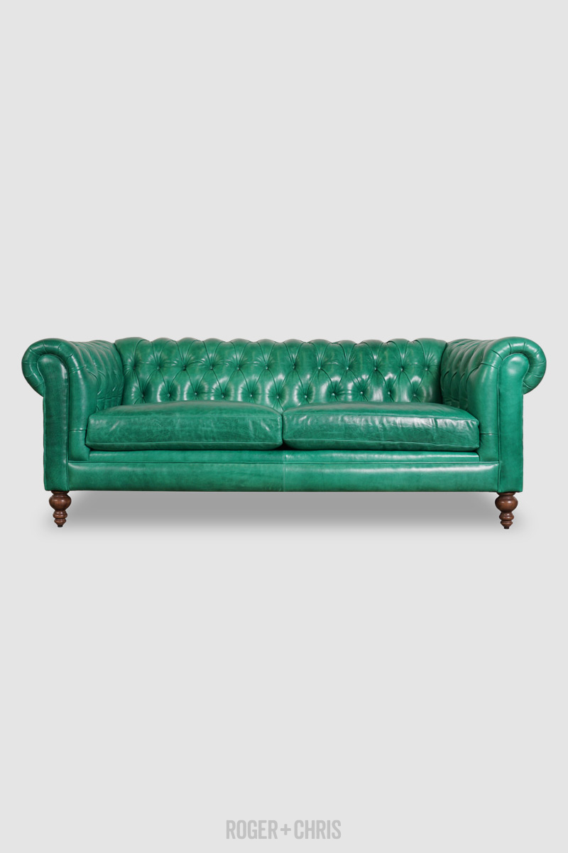 85 Higgins Sofa In Mont Blanc Emerald Green Leather Roger