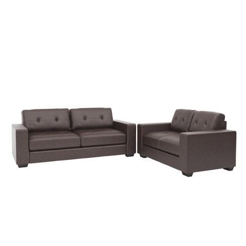 Corliving 2pc Club Tufted Bonded Leather Sofa Set Chocolate Brown