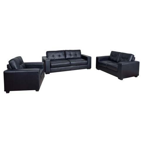 3pc Tufted Seat Backrest Bonded Leather Sofa Set Corliving