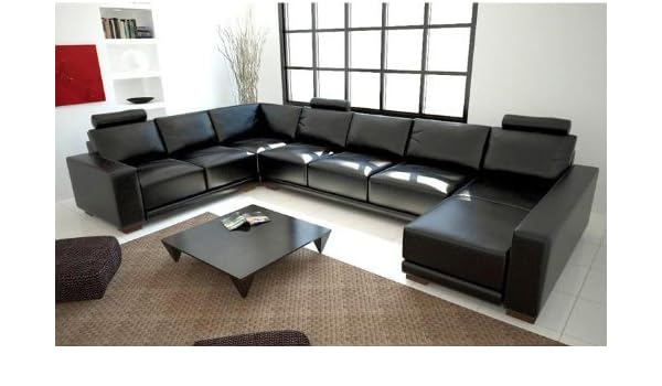 Amazon Com Tosh Furniture Modern Black Leather Sectional