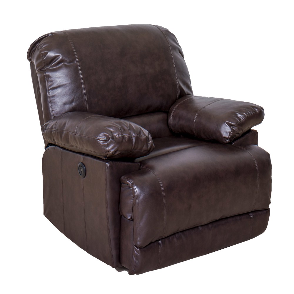 Leather Power Recliner With Usb Port Chocolate Brown Corliving