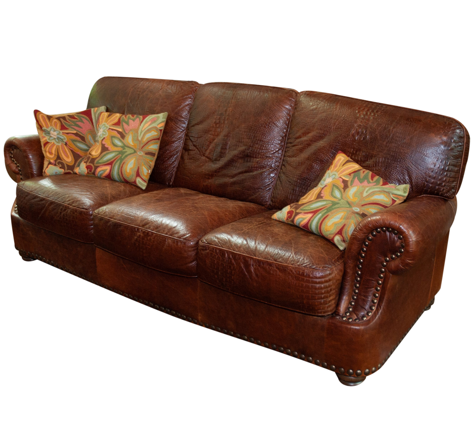 Alligator Style Embossed Leather Sofa With Throw Pillows Ebth