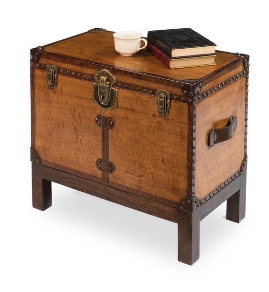 Wood Leather Chest Table On Stand Paper Brass Tacks Tan Leather W Hand Stained Finish