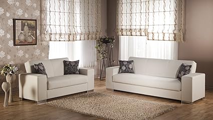 Kobe 2 Pc Escudo Cream Sofa Set 3 Seat Sleeper And Loveseat