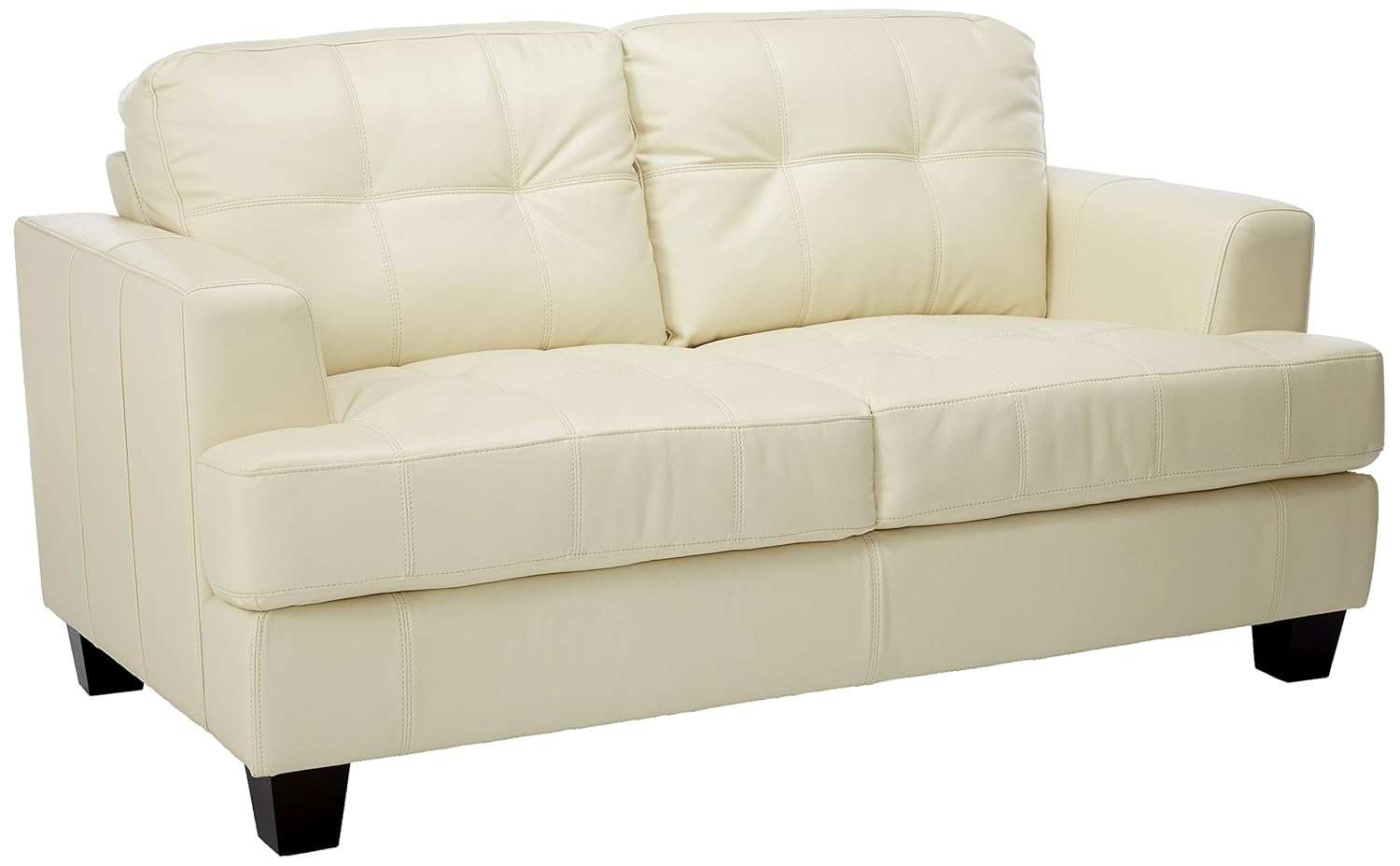 Leather Loveseat Cream Color Fixed Cushions Johnson