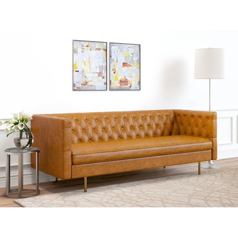 Barnaby Tufted Faux Leather Sofa Af Lifestyle