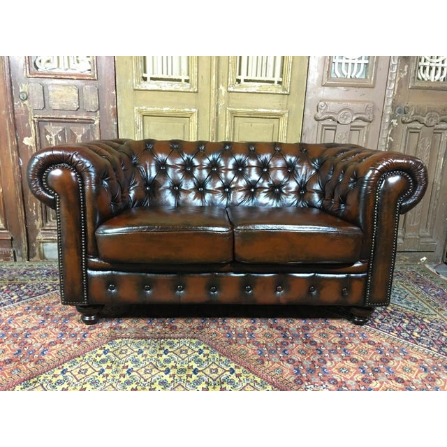 The best distressing techniques and the finest leather make this chesterfield a timeless classic. Our 2 seater sofa is a well crafted statement with elegant scroll arms deep buttoned backrests and solid turned wooden legs. When investing in this formidable timeless sofa durability and longevity should be considered as the most eclectic aesthetic possible.