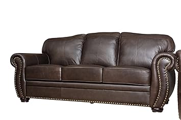 Amazon Com Abbyson Palaza Leather Sofa Brown Home Kitchen