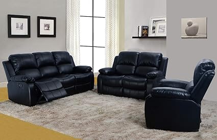 Lifestyle Furniture 3 Pieces Reclining Living Room Sofa Set Bonded Leather Black Ls2900b 3pc