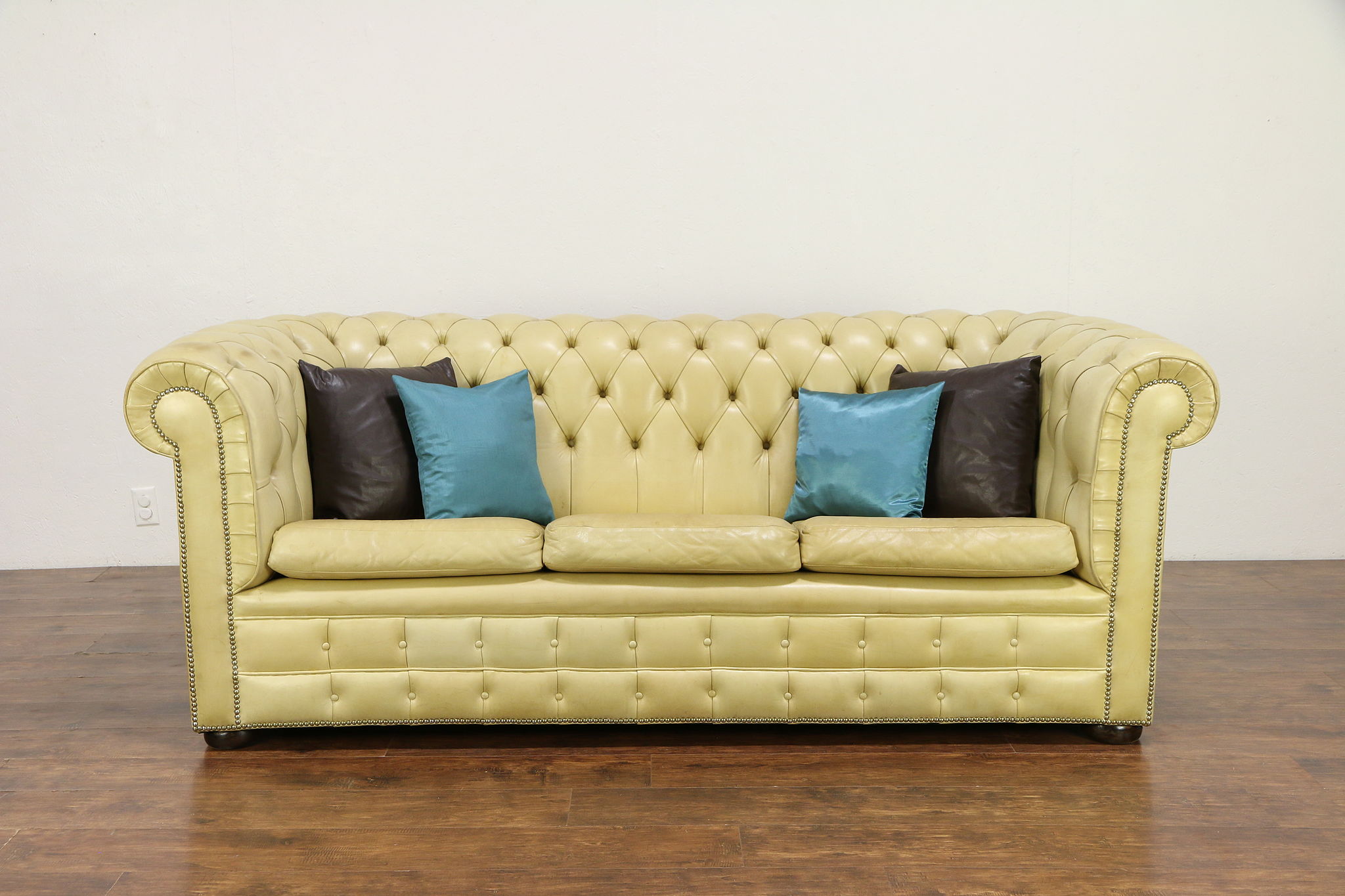 Chesterfield Vintage Tufted Leather 3 Cushion Scandinavian Sofa 30570