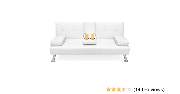 Best Choice Products Modern Faux Leather Convertible Futon Sofa Bed Recliner Couch W Metal Legs 2 Cup Holders White