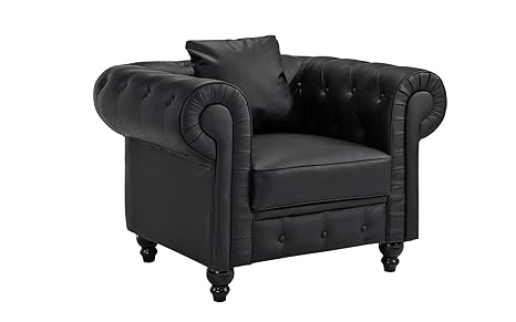Classic Chesterfield Scroll Arm Tufted Bonded Leather Accent Chair Black